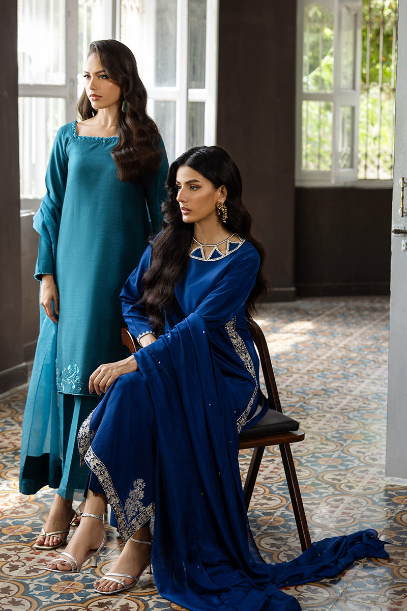 Raw silk shirt meticulously adorned with hand embellishments; paired with raw silk Shalwar & organza border with embellished spray and silk finishing