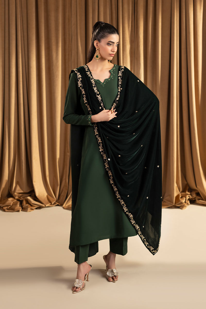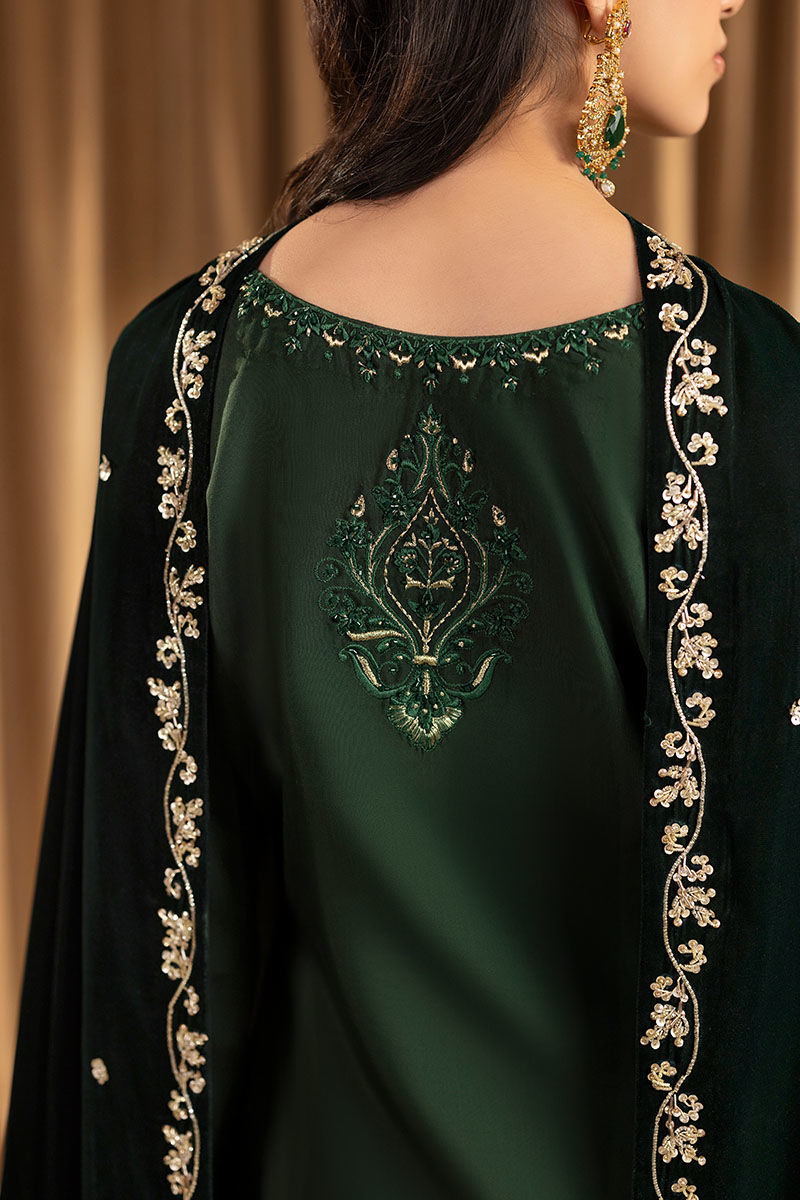 The dark green silk shirt and trouser combo sounds like a perfect blend of elegance and tradition The velvet shawl with heavy adda work adds a luxurious touch The embroidery on the neckline, sleeves, and back motif must be intricate and beautiful