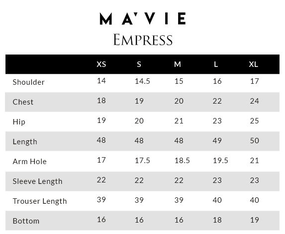 * Dry clean recommended.* Iron clothes at moderate temperature.* Store outfit in the garment bag.