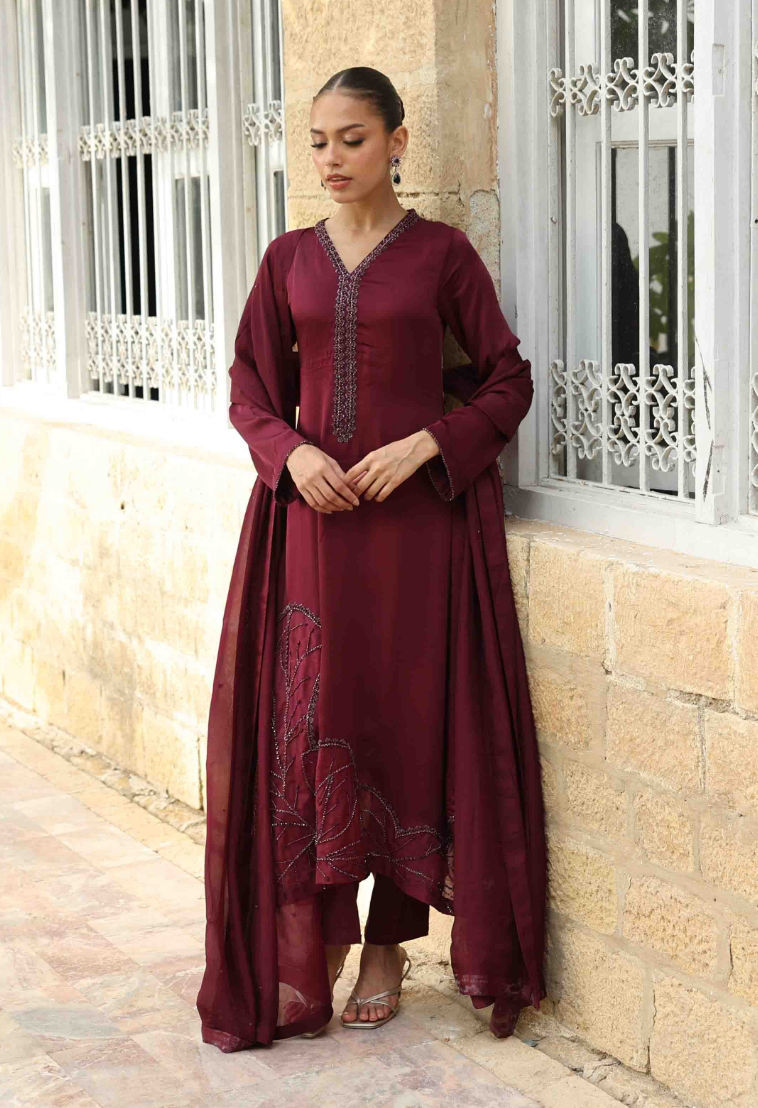 Cotton net straight shirt with crochet laces and embroidered organza panel on the hemline adorned with applique flowers on center front of the shirt.